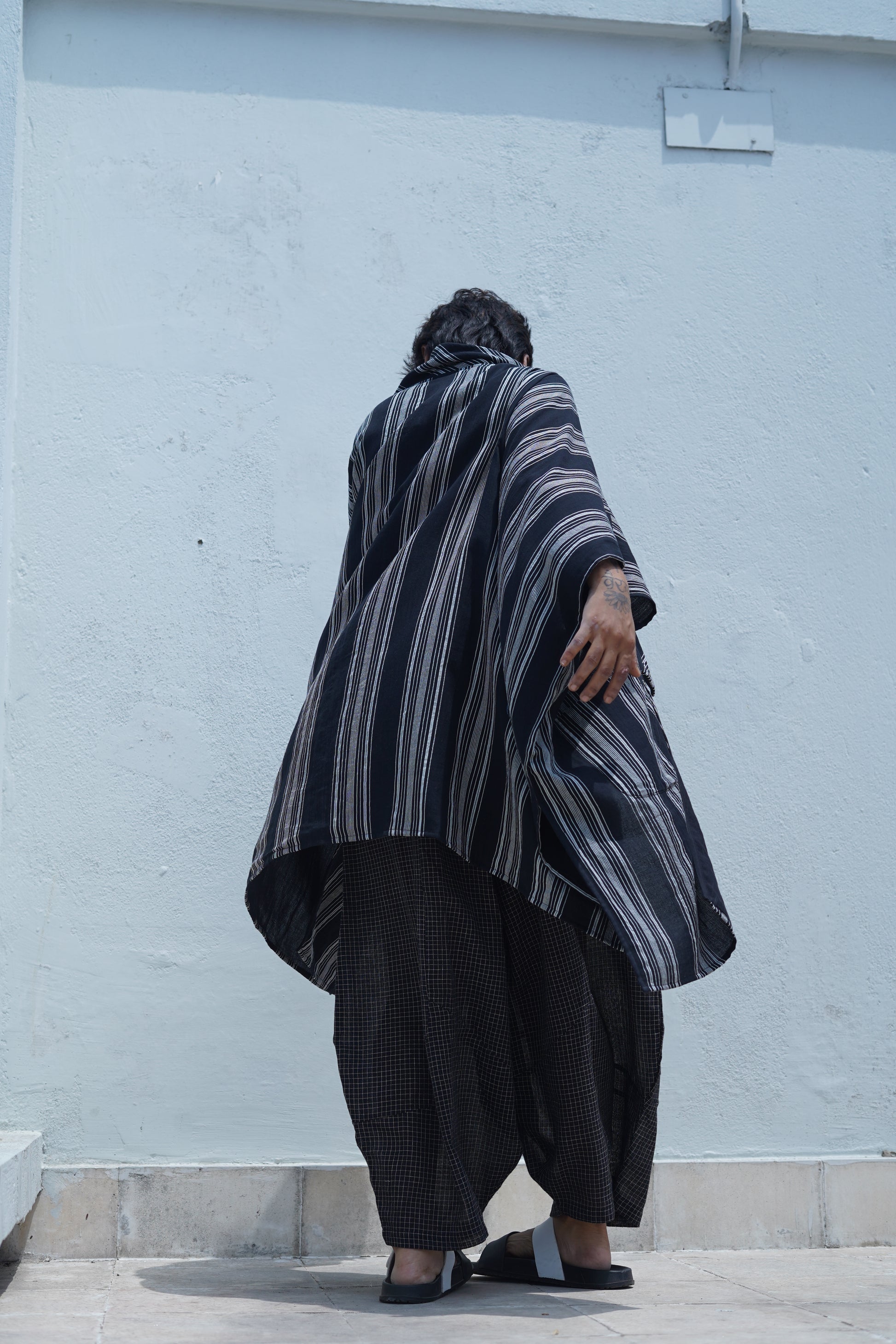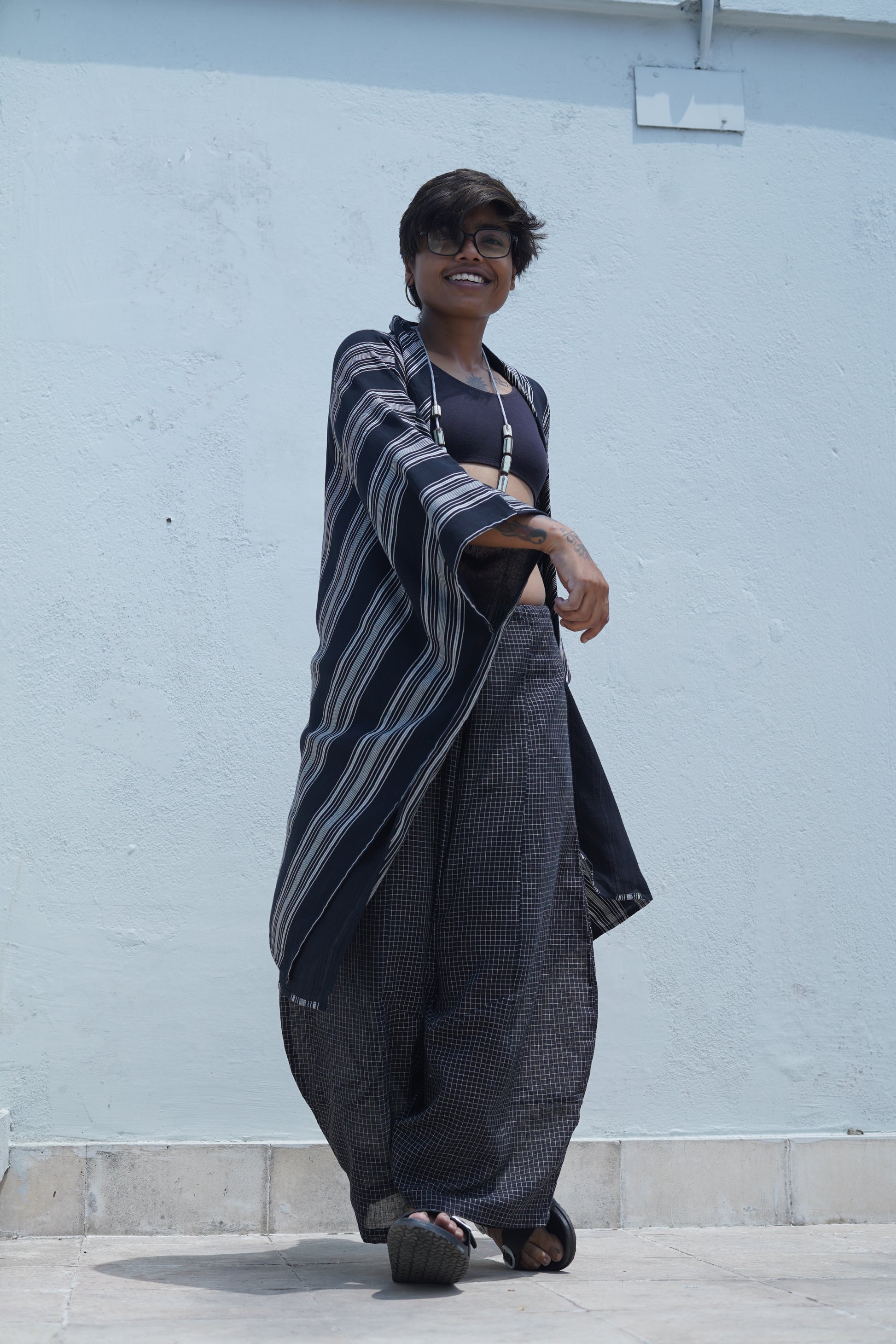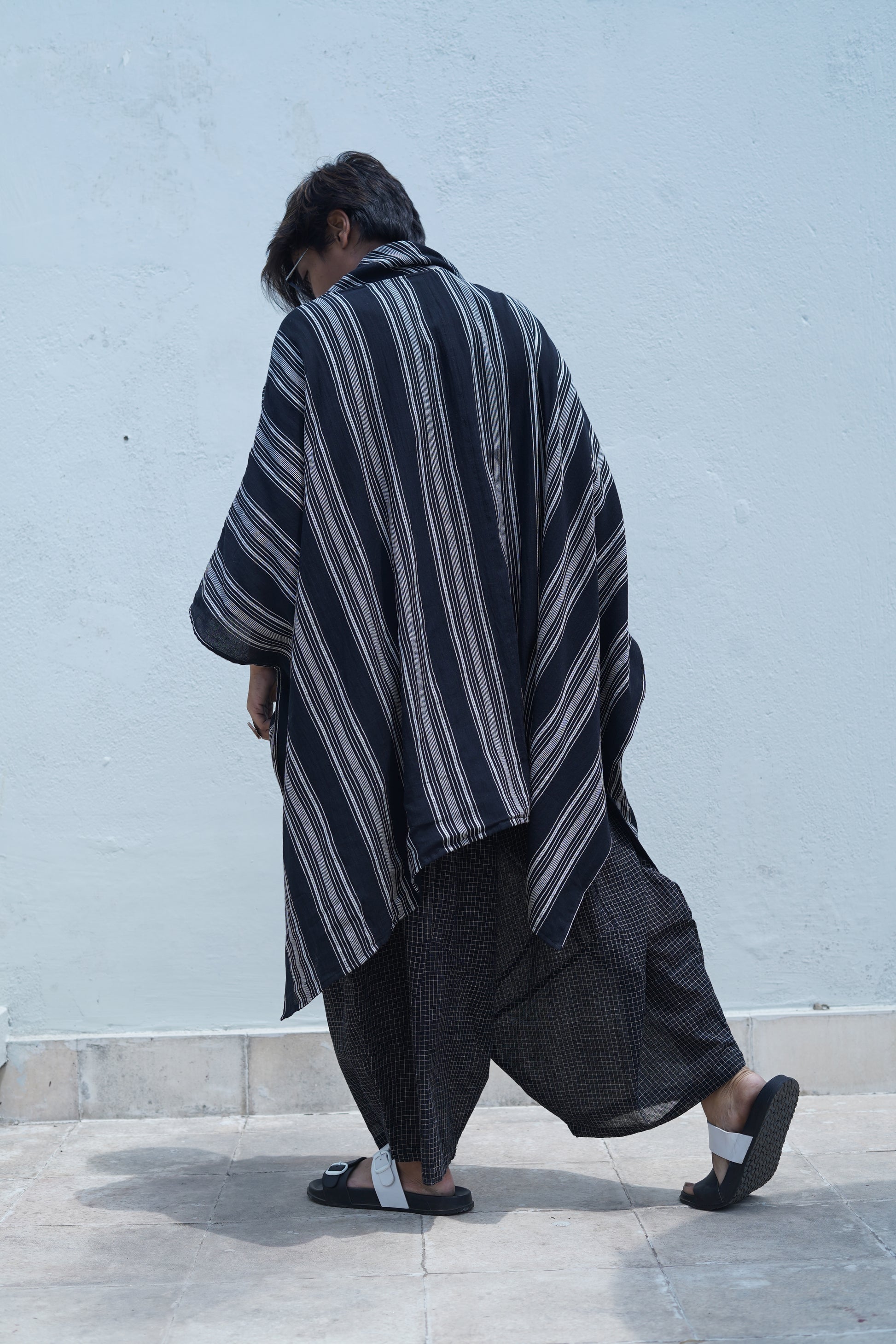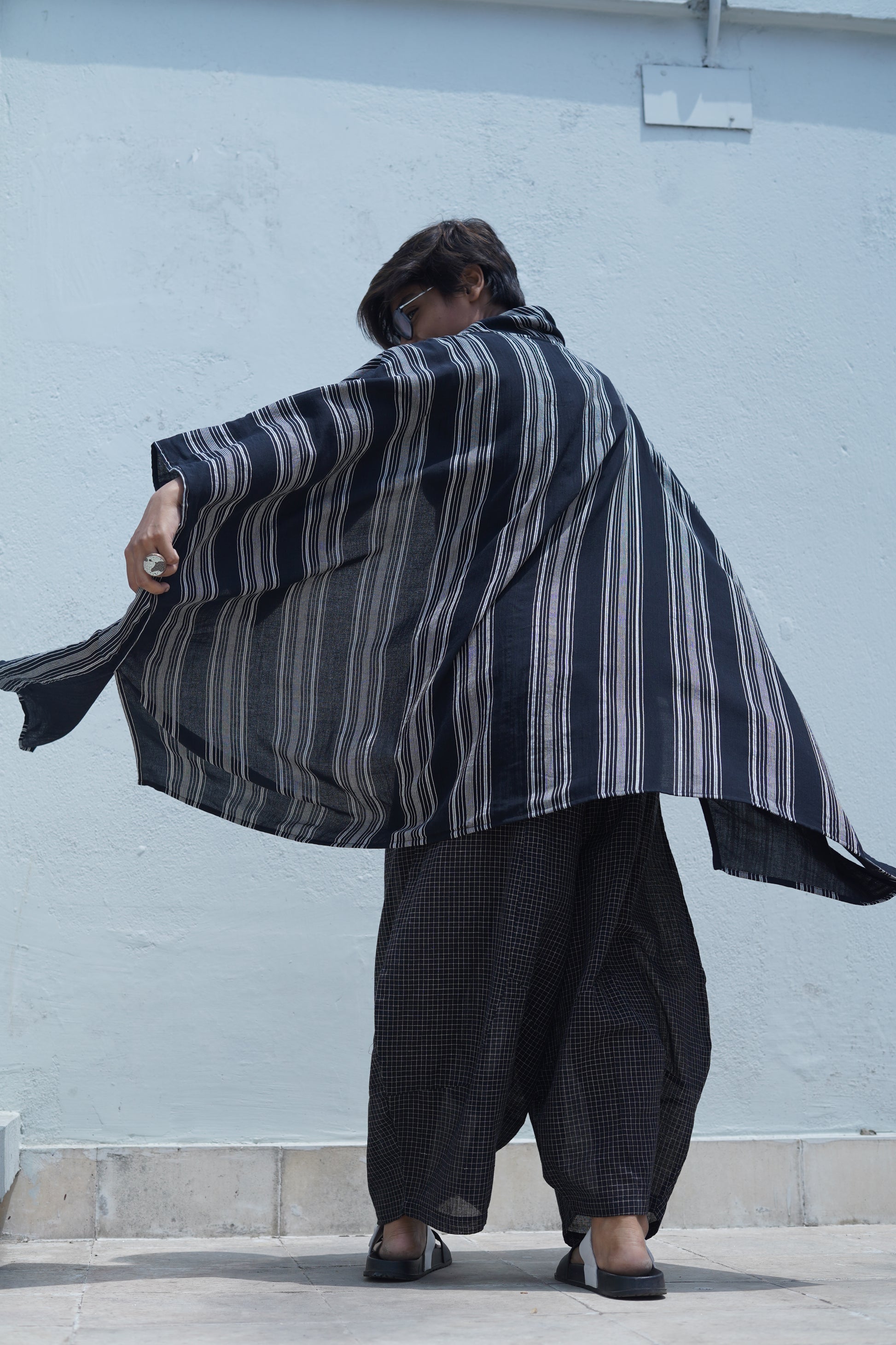 made in striped black linen fabric, this kimono is light as air and is a great as a cover up!