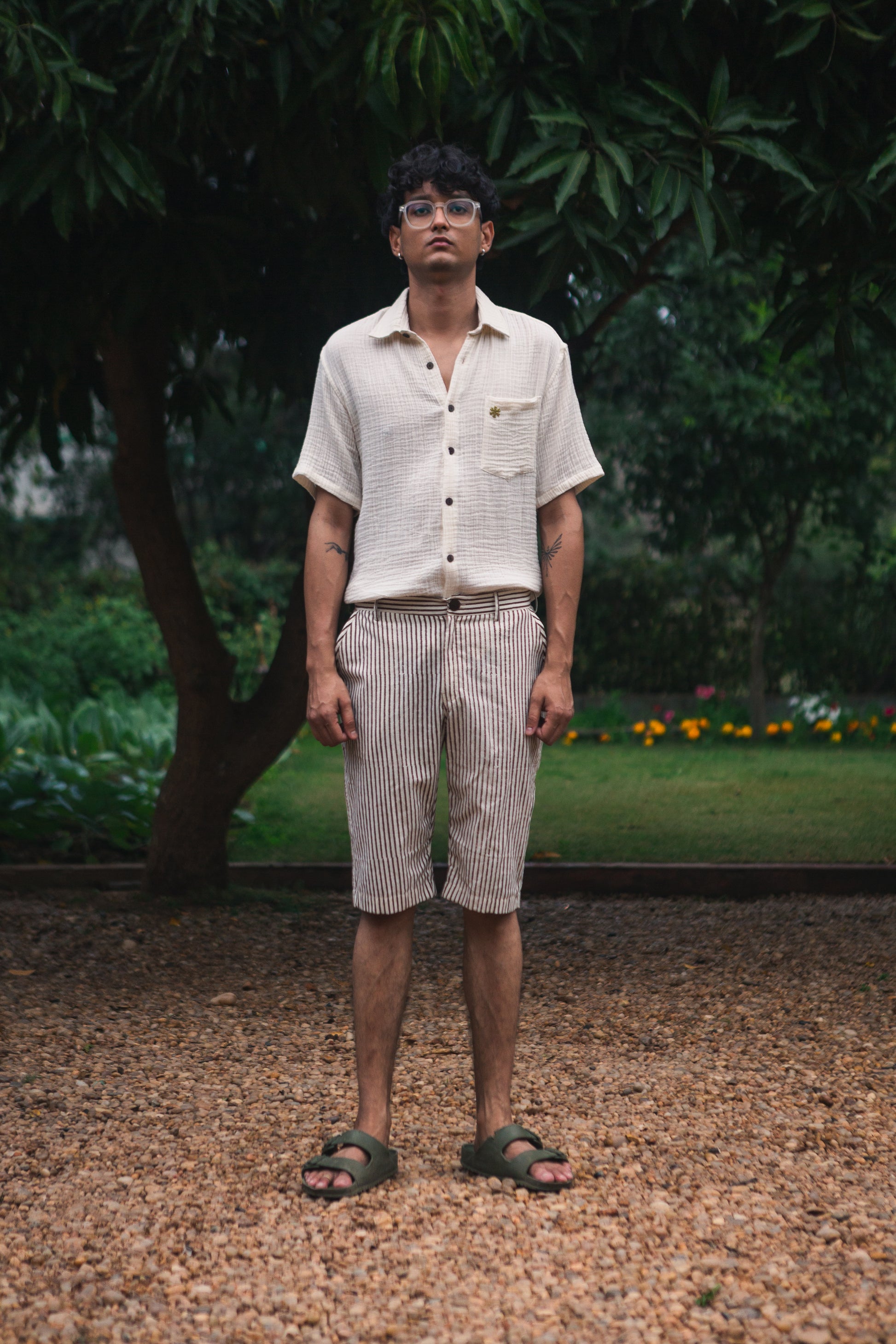 these playful khadi cotton shirts are a delight for summers! pair them with your tees and walk away through your chores at ease.