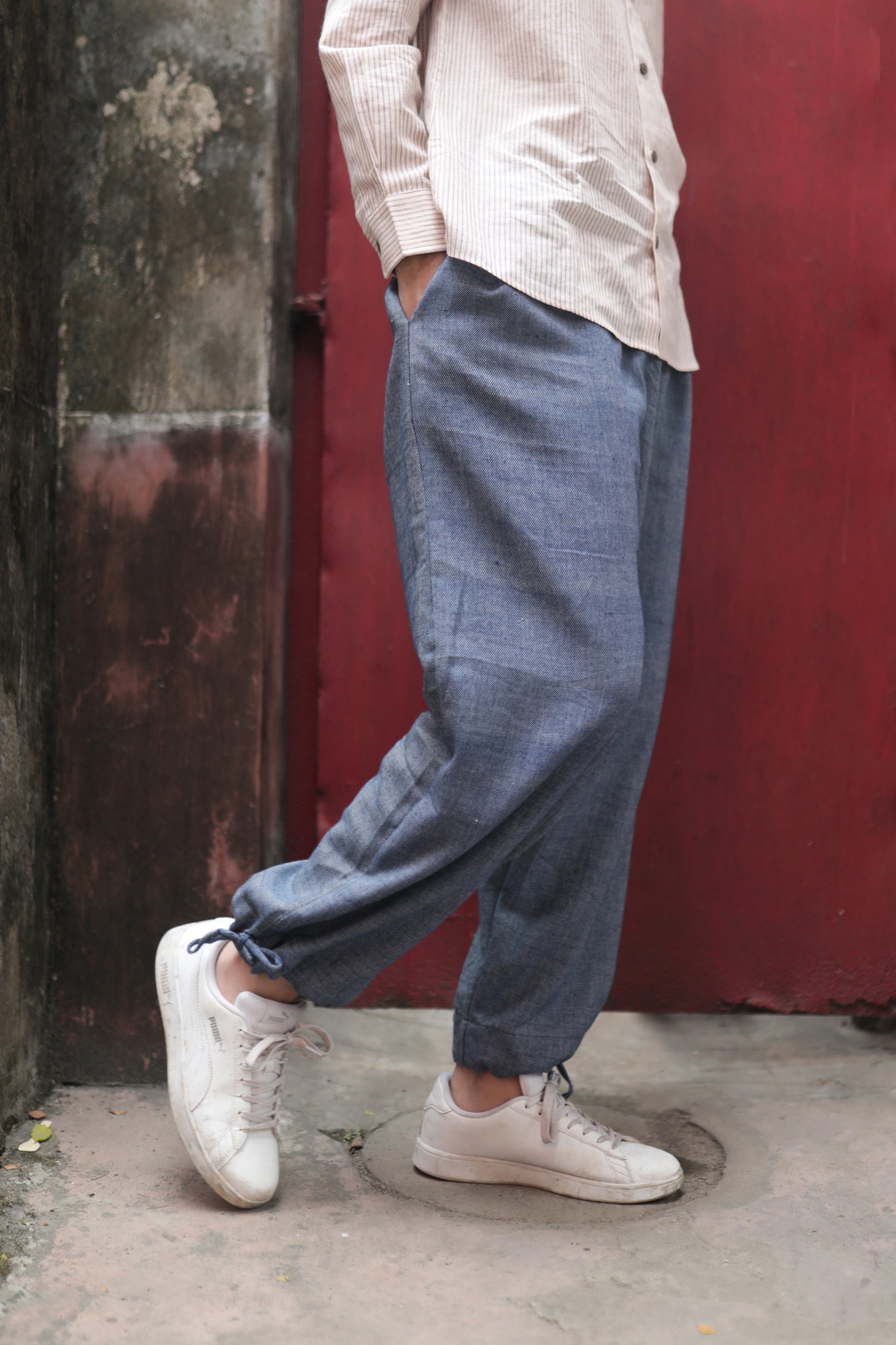 our comfy pants in khadi denim are a perfect laid back yet neat addition to your summer wardrobes! pair it up with any of the shirts from our collection and your fave kicks or sandals.