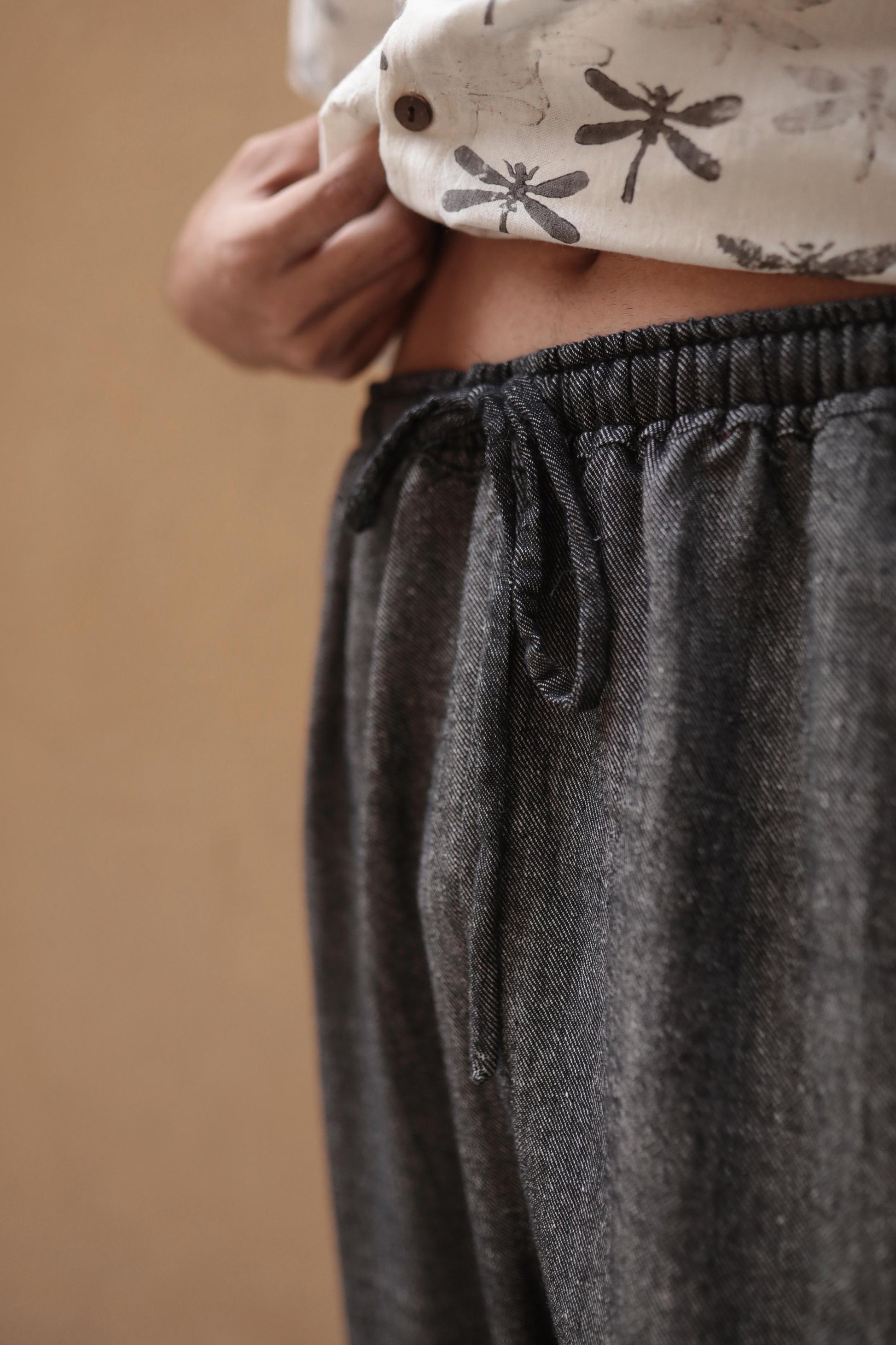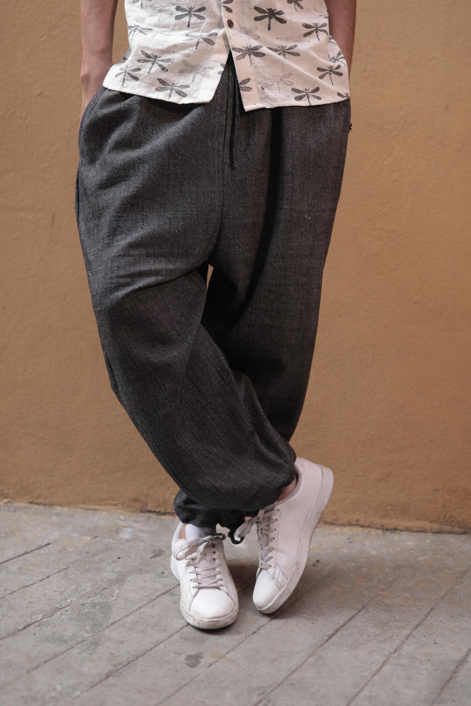 our comfy pants in khadi denim are a perfect laid back yet neat addition to your summer wardrobes! pair it up with any of the shirts from our collection and your fave kicks or sandals.