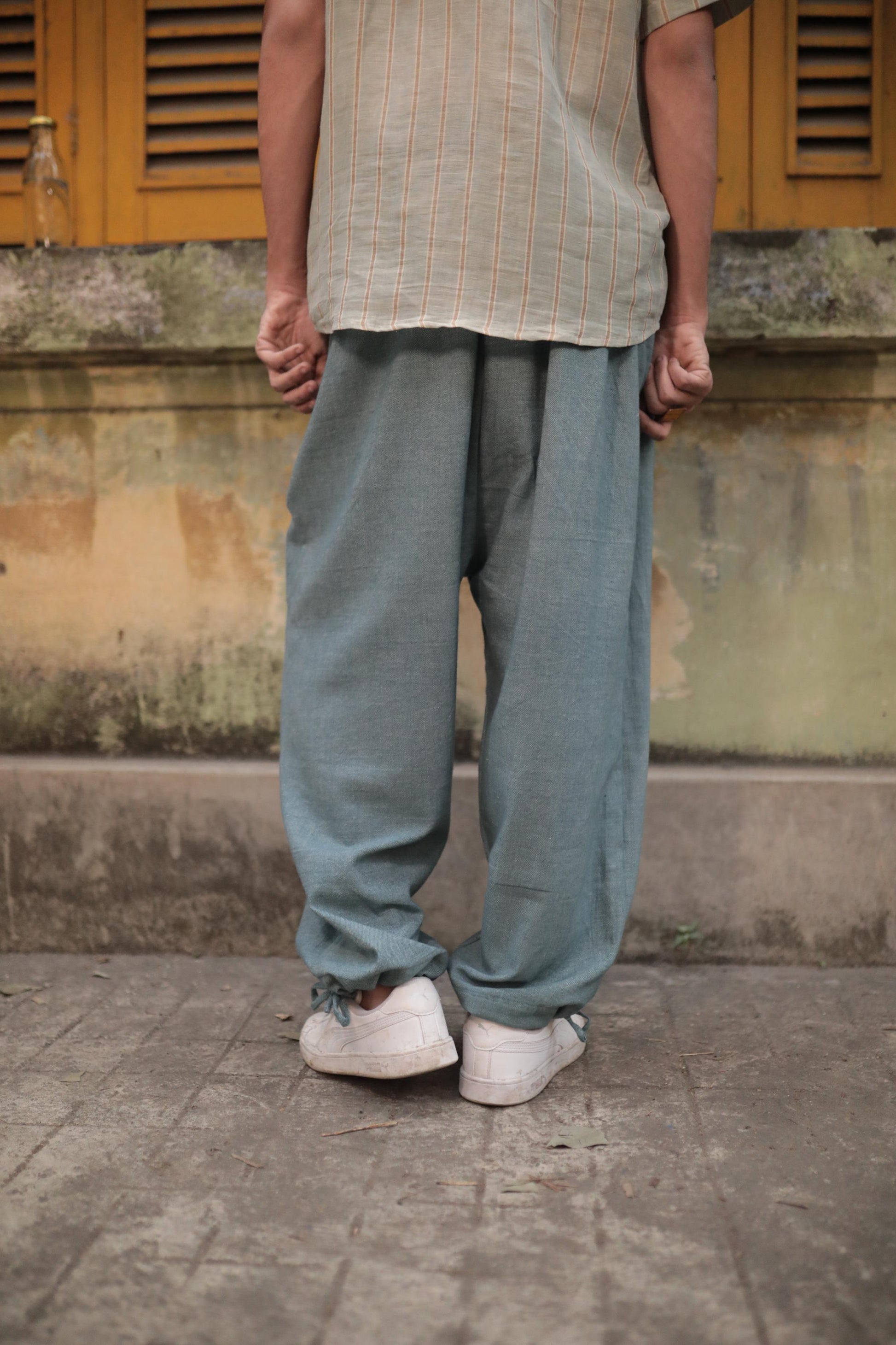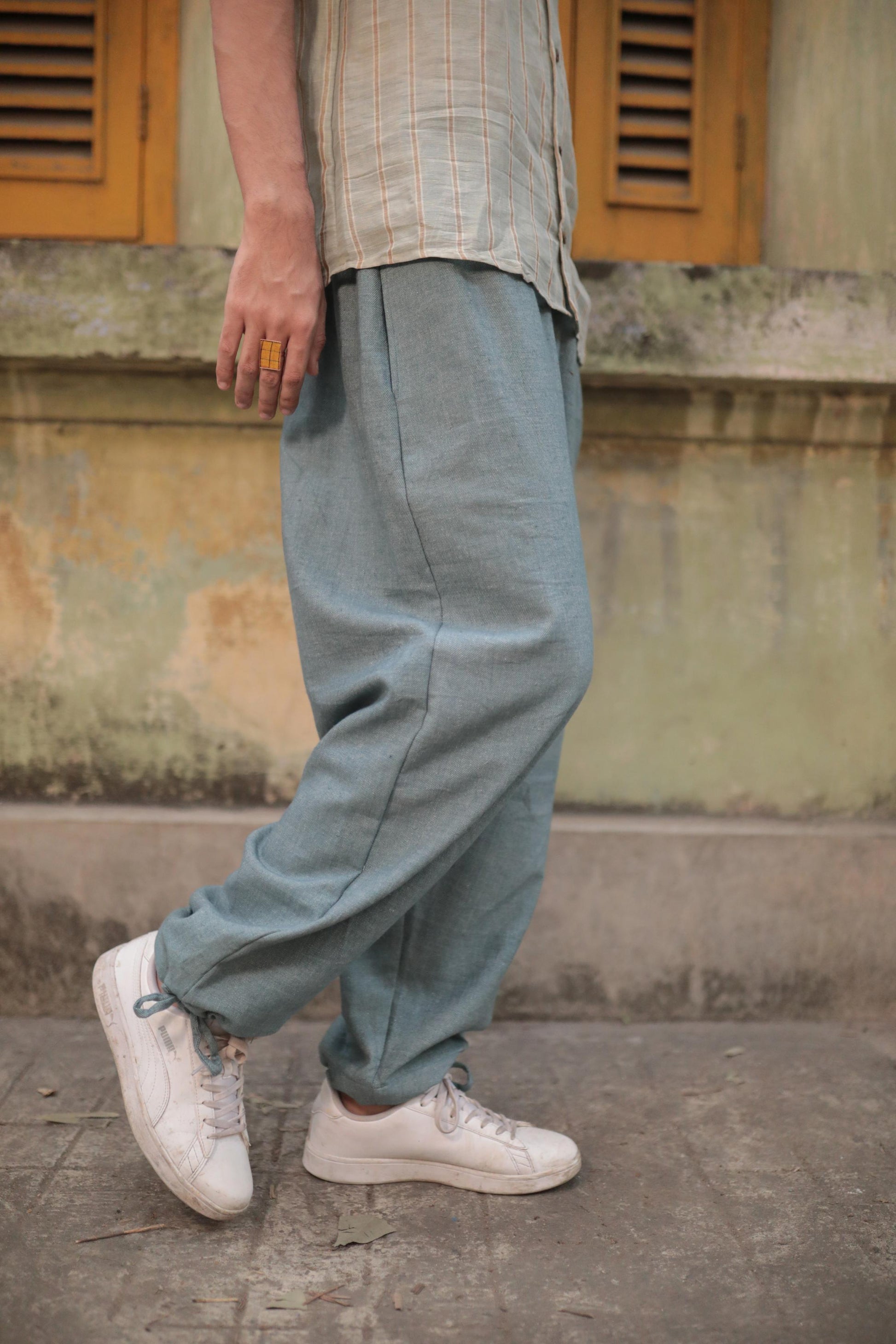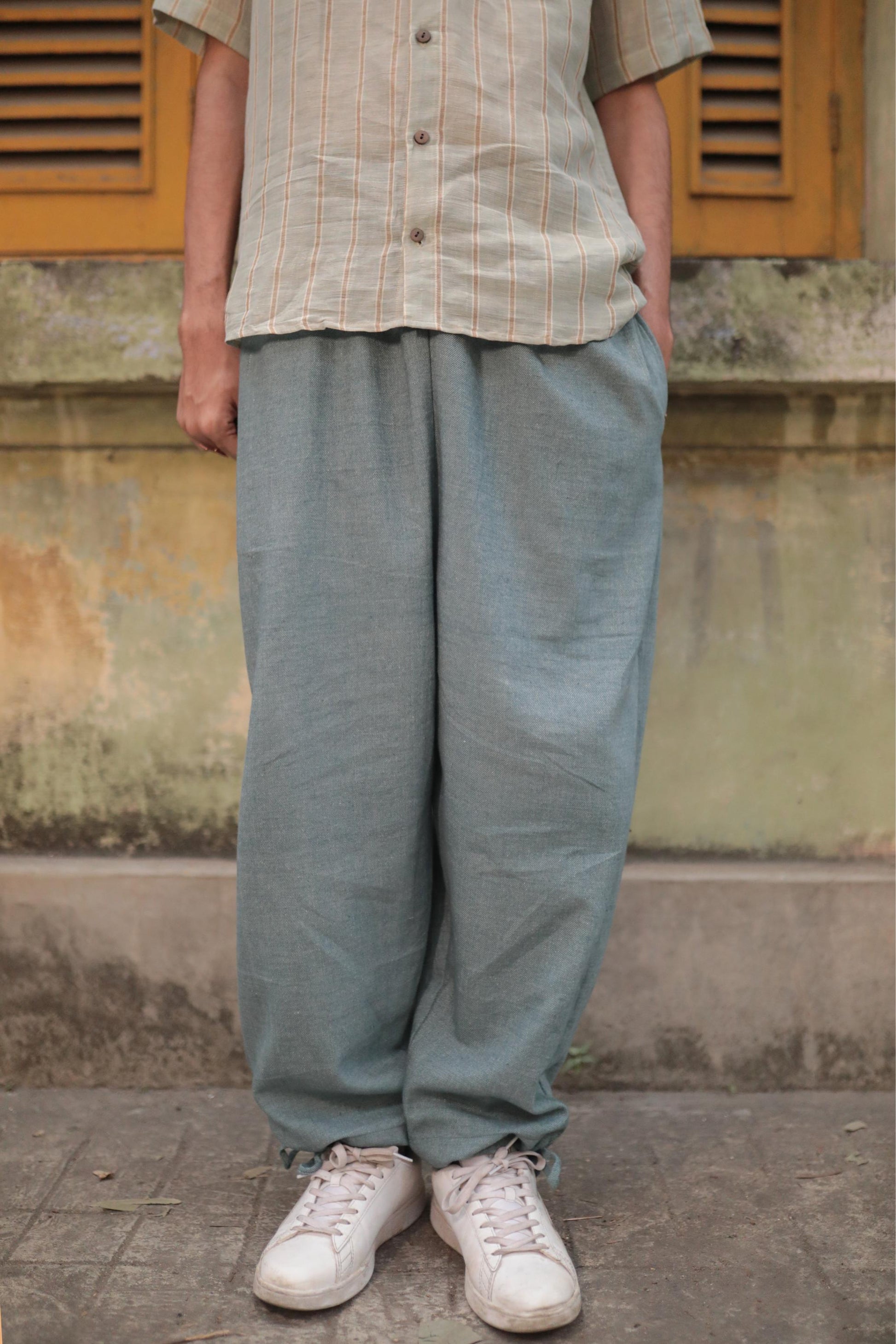 our comfy pants in khadi denim are a perfectly laid back yet neat addition to your summer wardrobe. pair it with any of the shirts from our collection and your fave kicks or sandals.