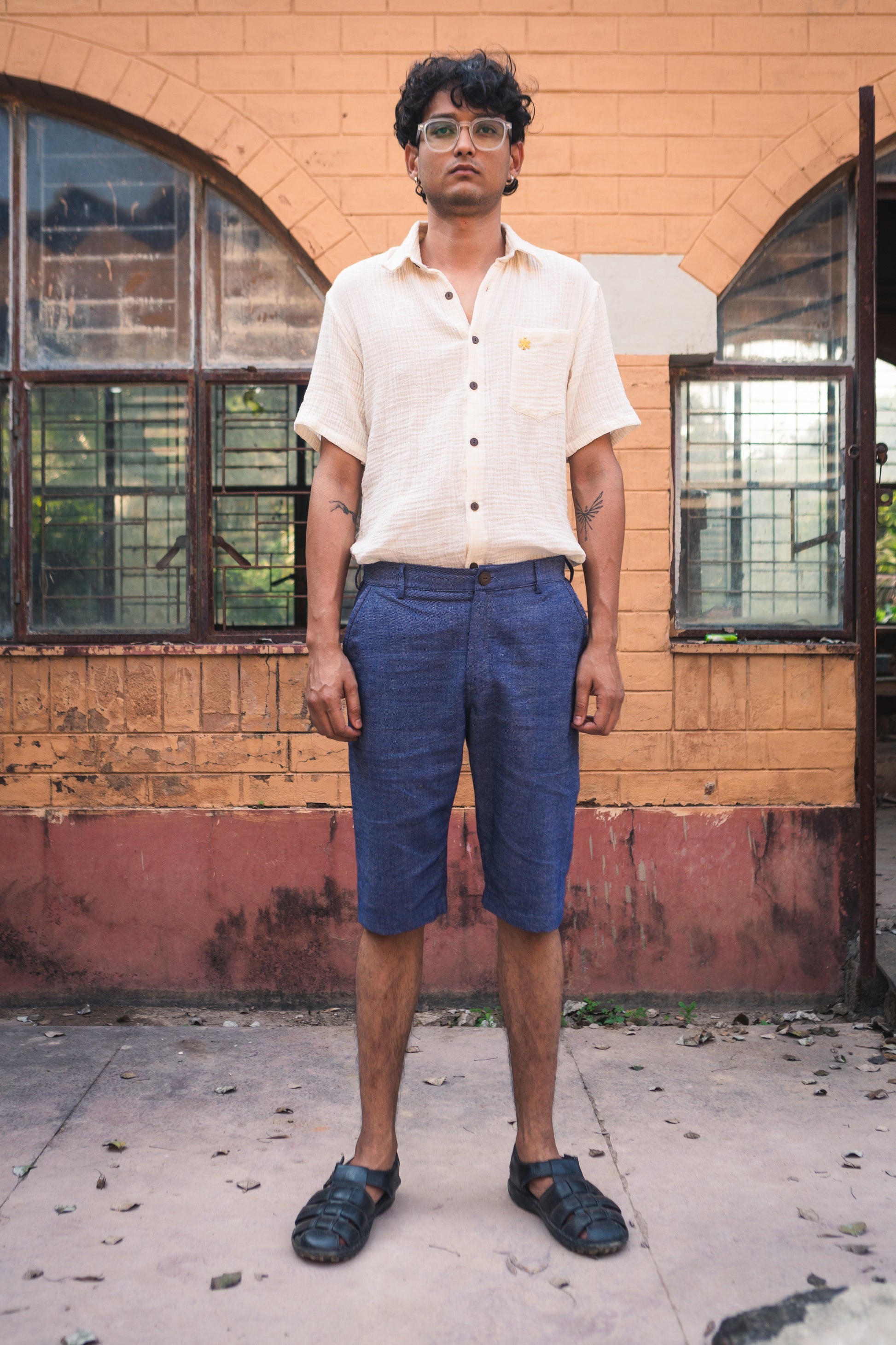 these playful khadi cotton shirts are a delight for summers! pair them with your tees and walk away through your chores at ease.