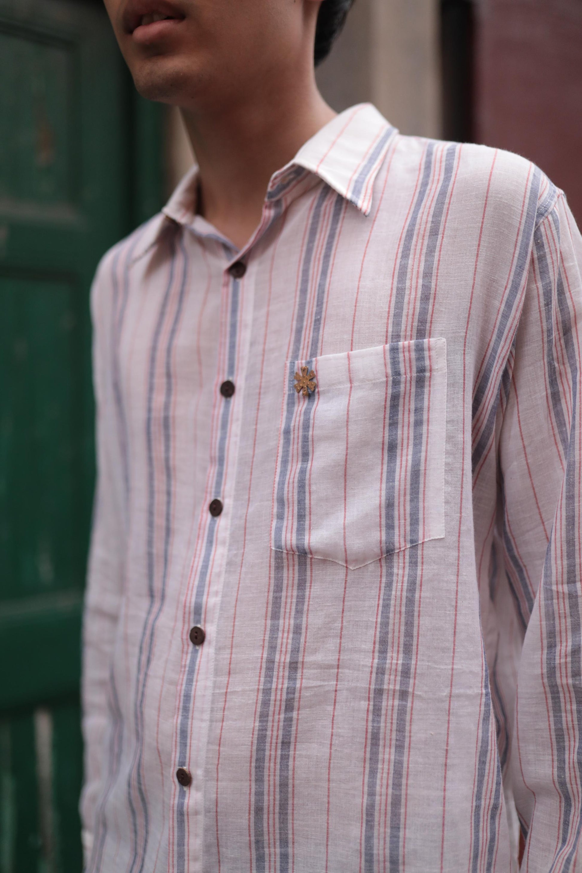 the fabric of our striped Cotton shirt feels like the softest hug and whispers comfort in every thread. perfect for a slow Sunday morning or a leisurely coffee date with a pal, this is surely the answer to all your summer sartorial needs